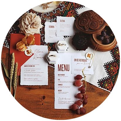 D’autres éléments de papeterie ou de décoration peuvent être créés sur demande :