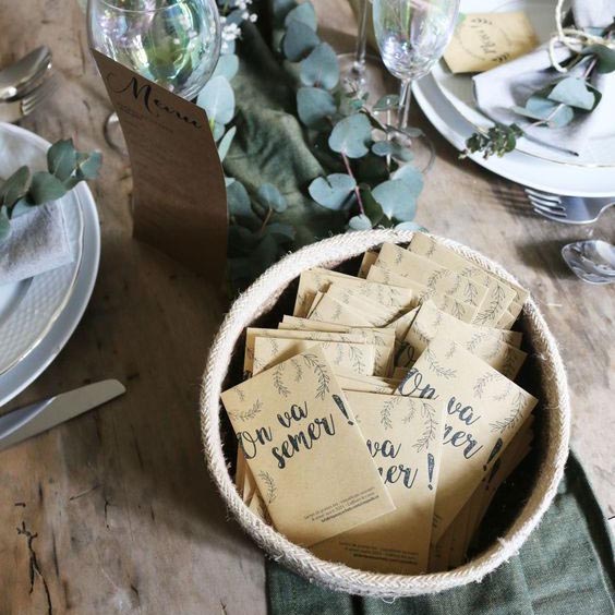Dans la même lignée, pourquoi ne pas offrir des graines à planter ? Vous pouvez acheter des graines en grande quantité et fabriquer vous-mêmes des petits contenant en papier dans lesquels vous viendrez les répartir.