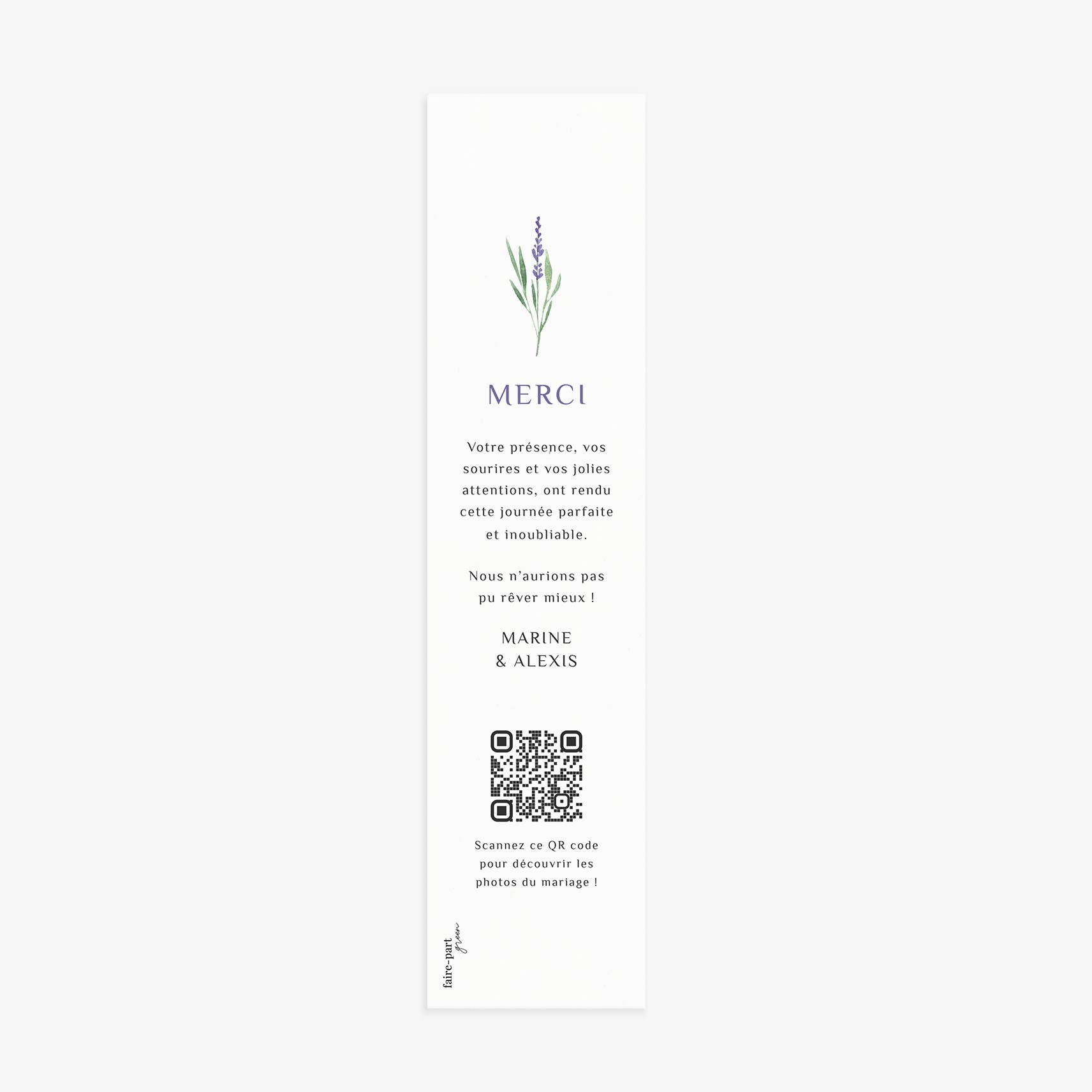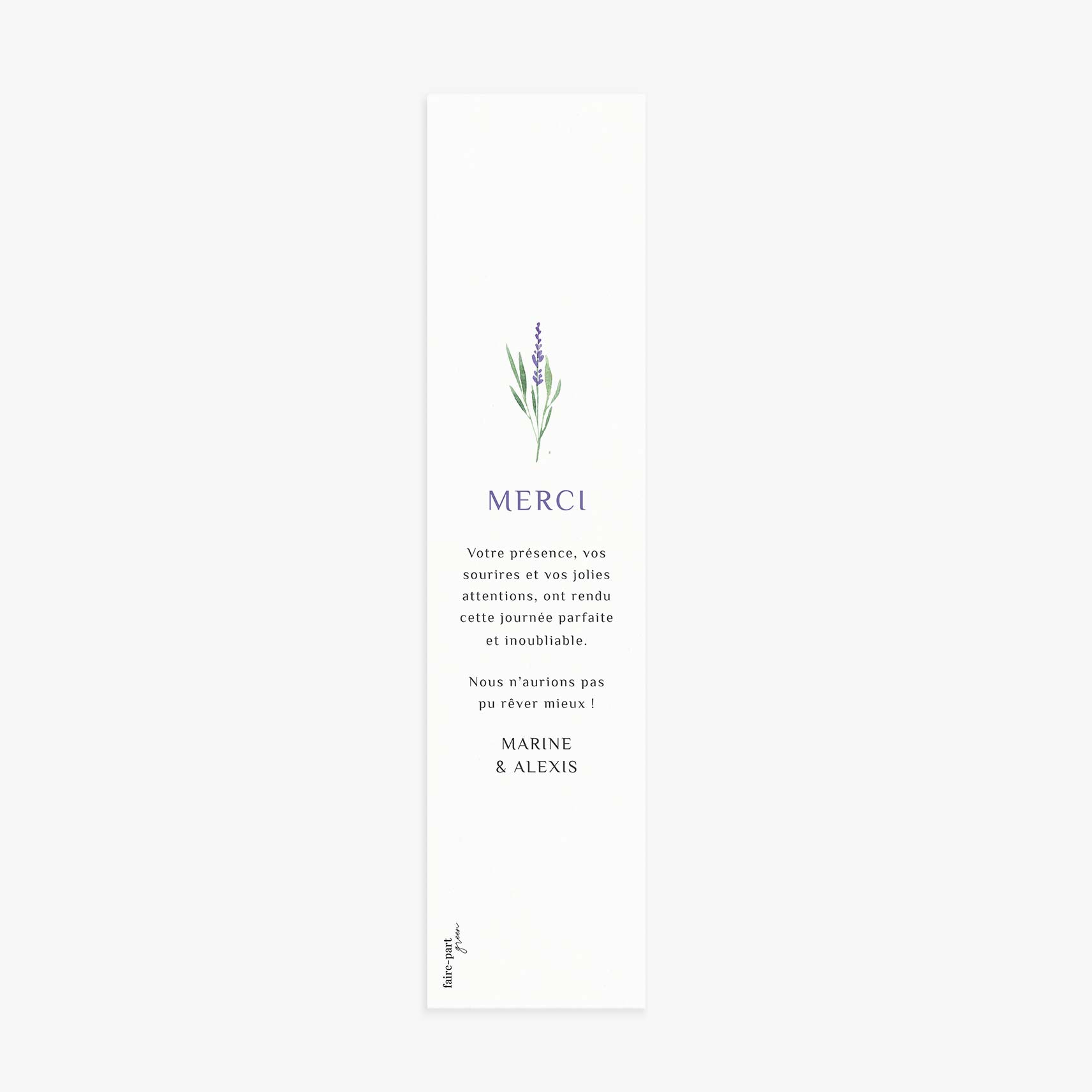 Accueil > Mariage > Carte de remerciement > Carte de remerciement mariage marque page lavande