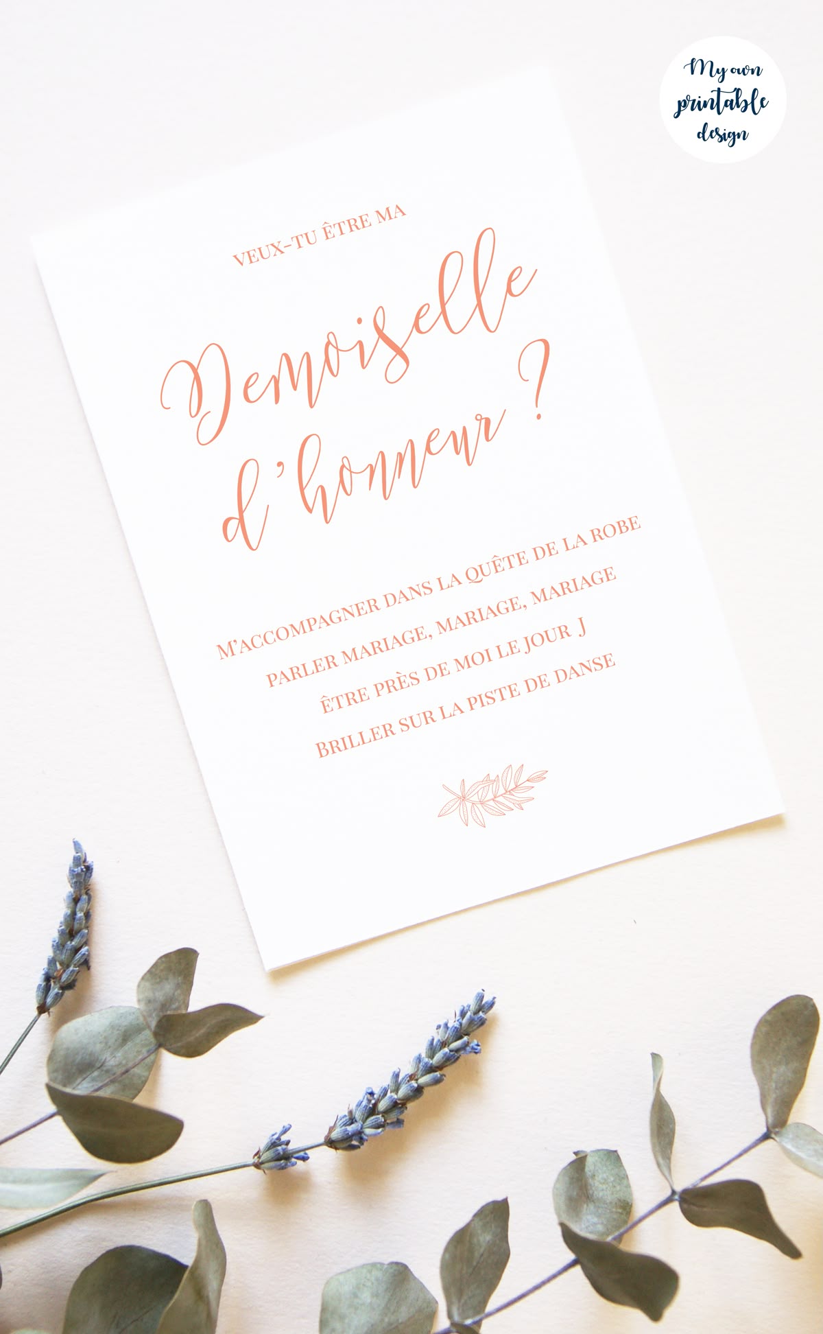 Carte demande demoiselle d’honneur à imprimer (PDF) – Délicatesse
