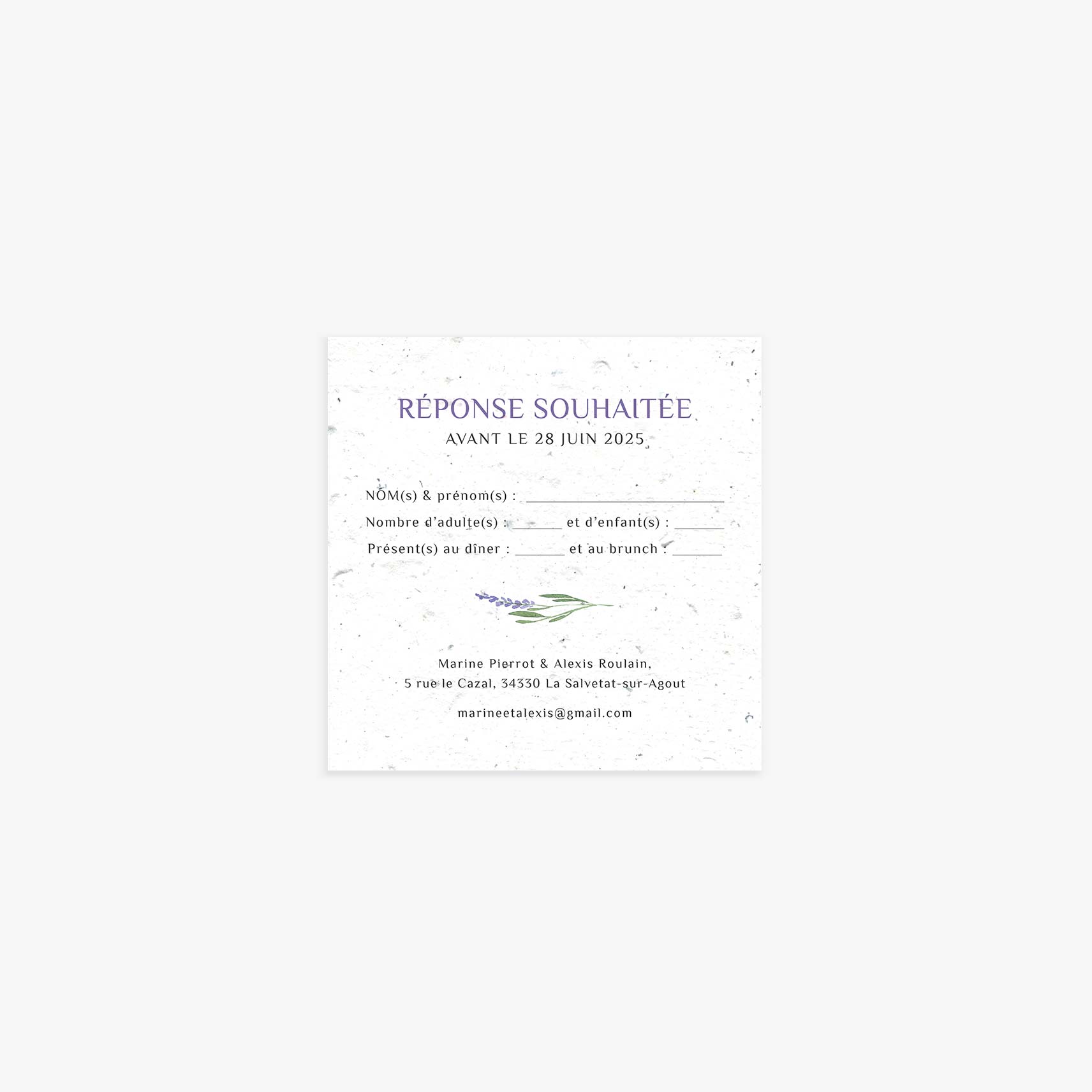 Carte (dîner, brunch, rsvp) ensemencée | Lavande