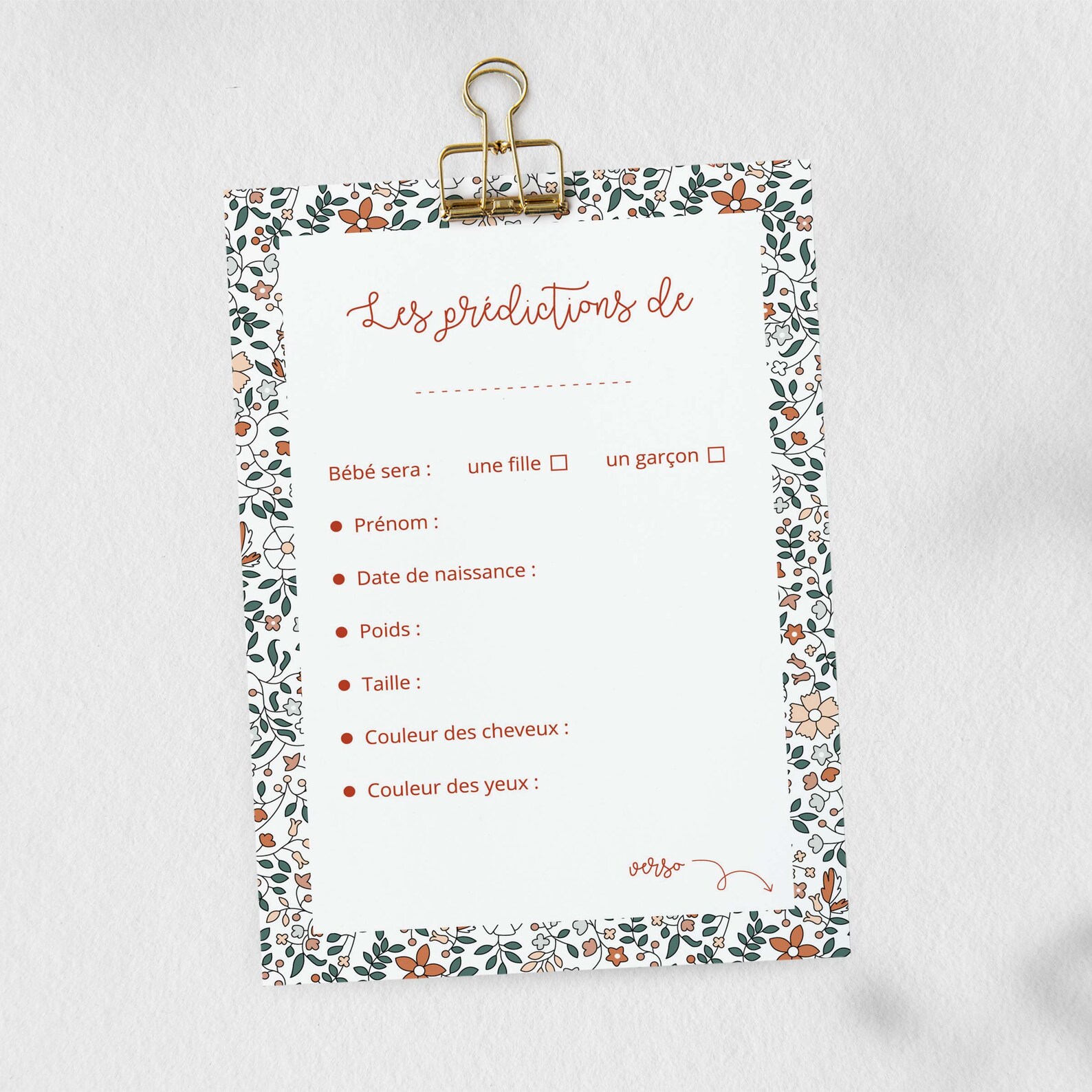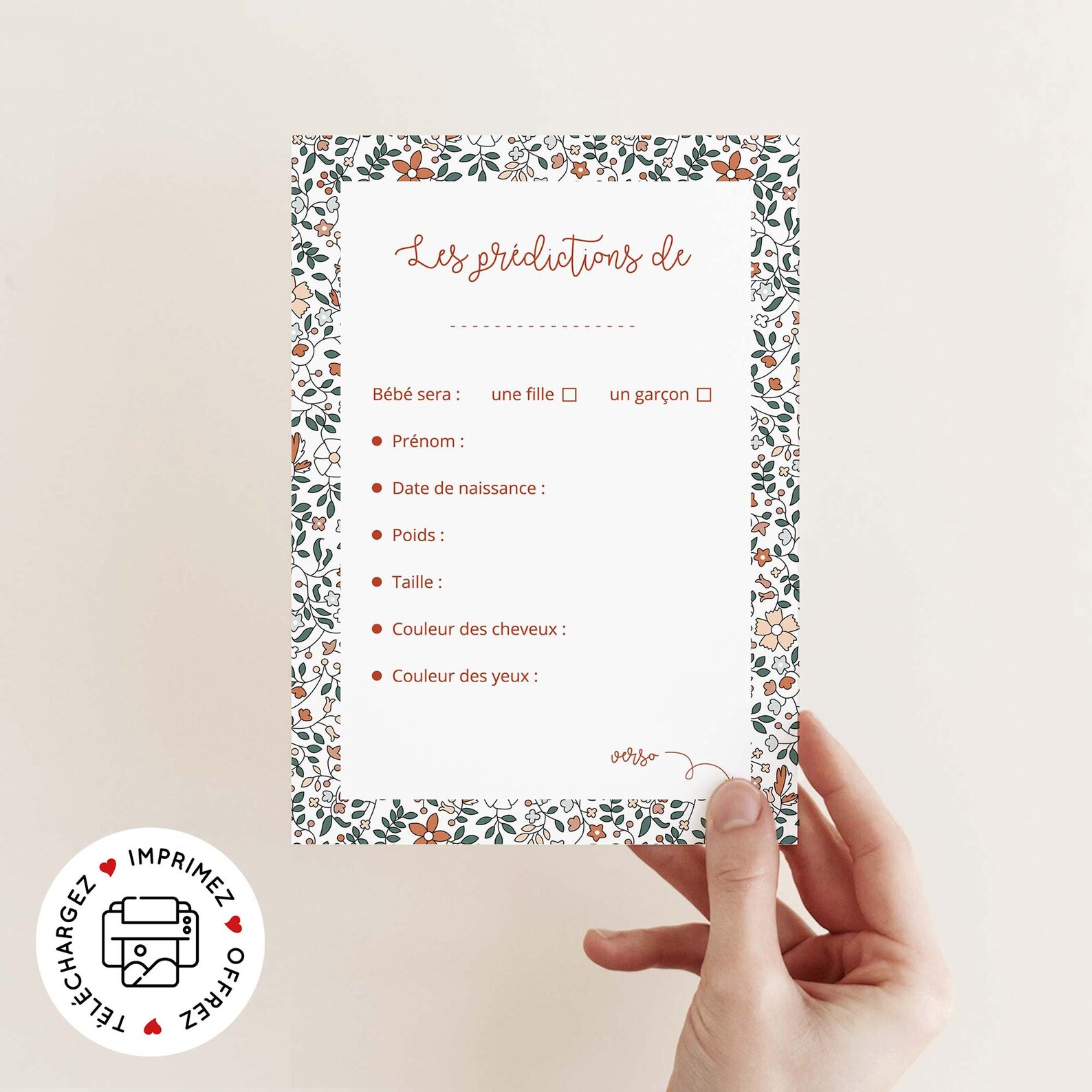Carte pronostic bébé liberty à imprimer 🌸 (PDF)