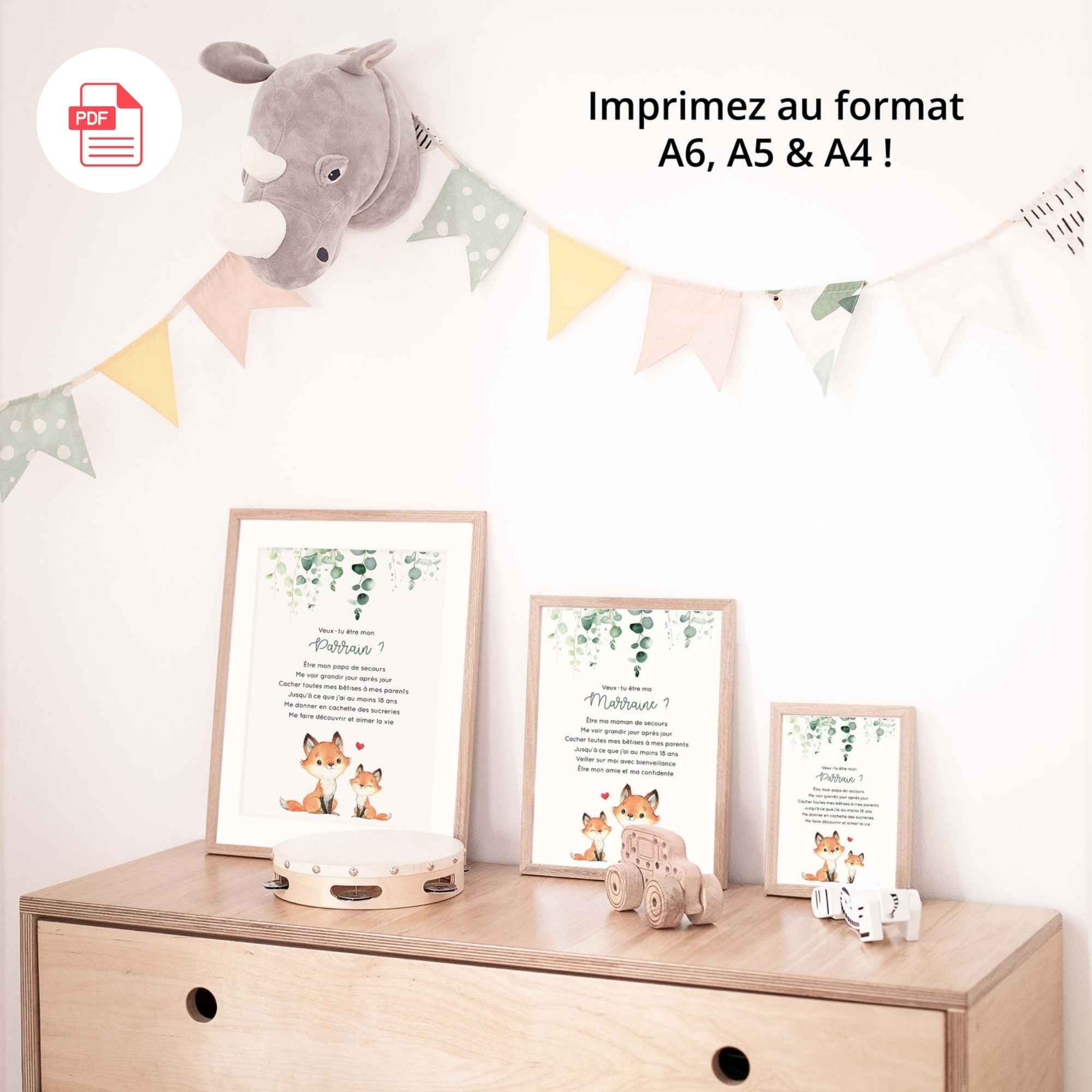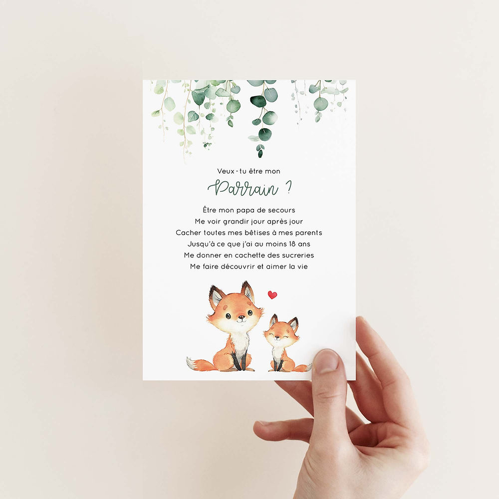 Cartes demande parrain marraine à imprimer – Renard 🦊 (PDF)