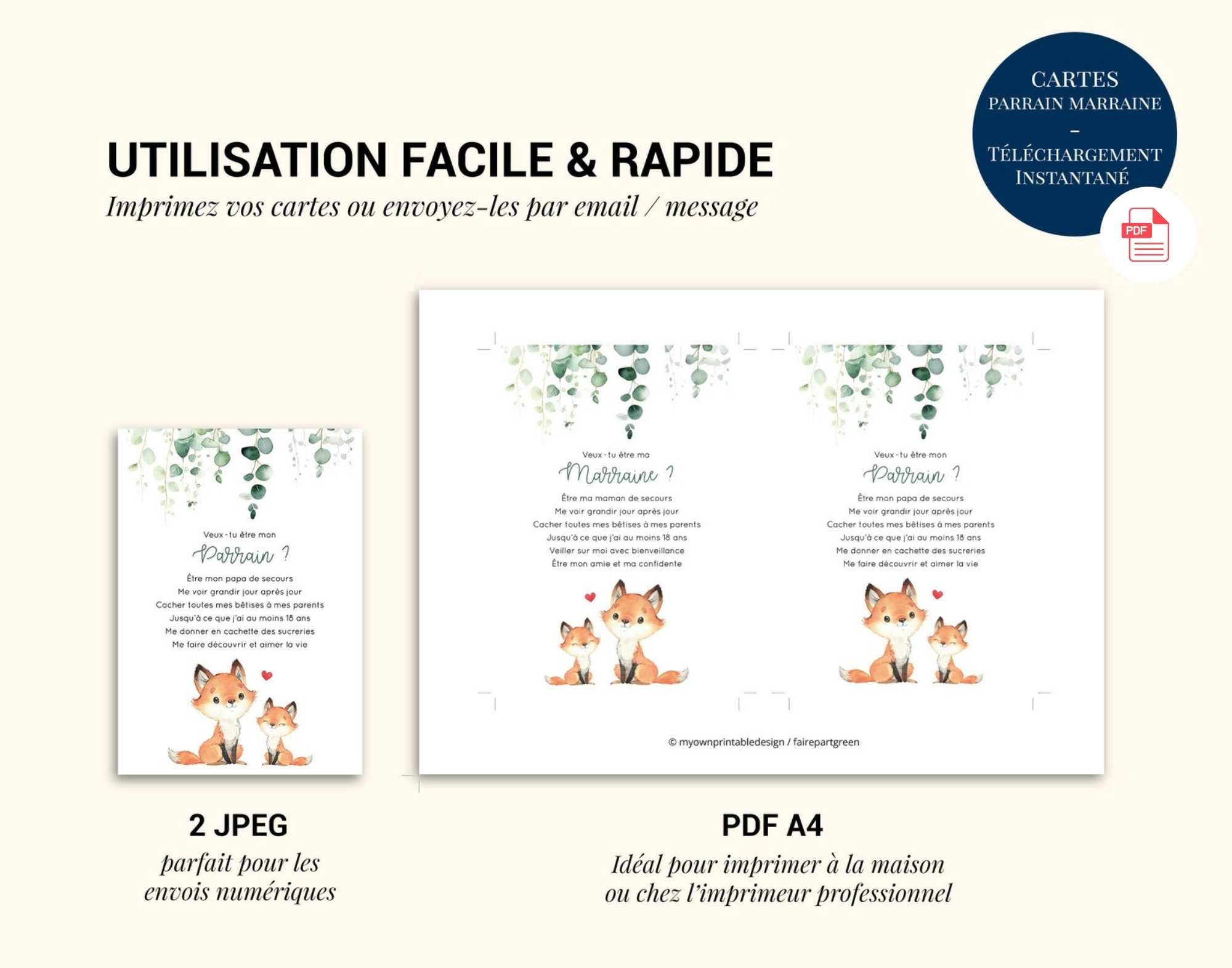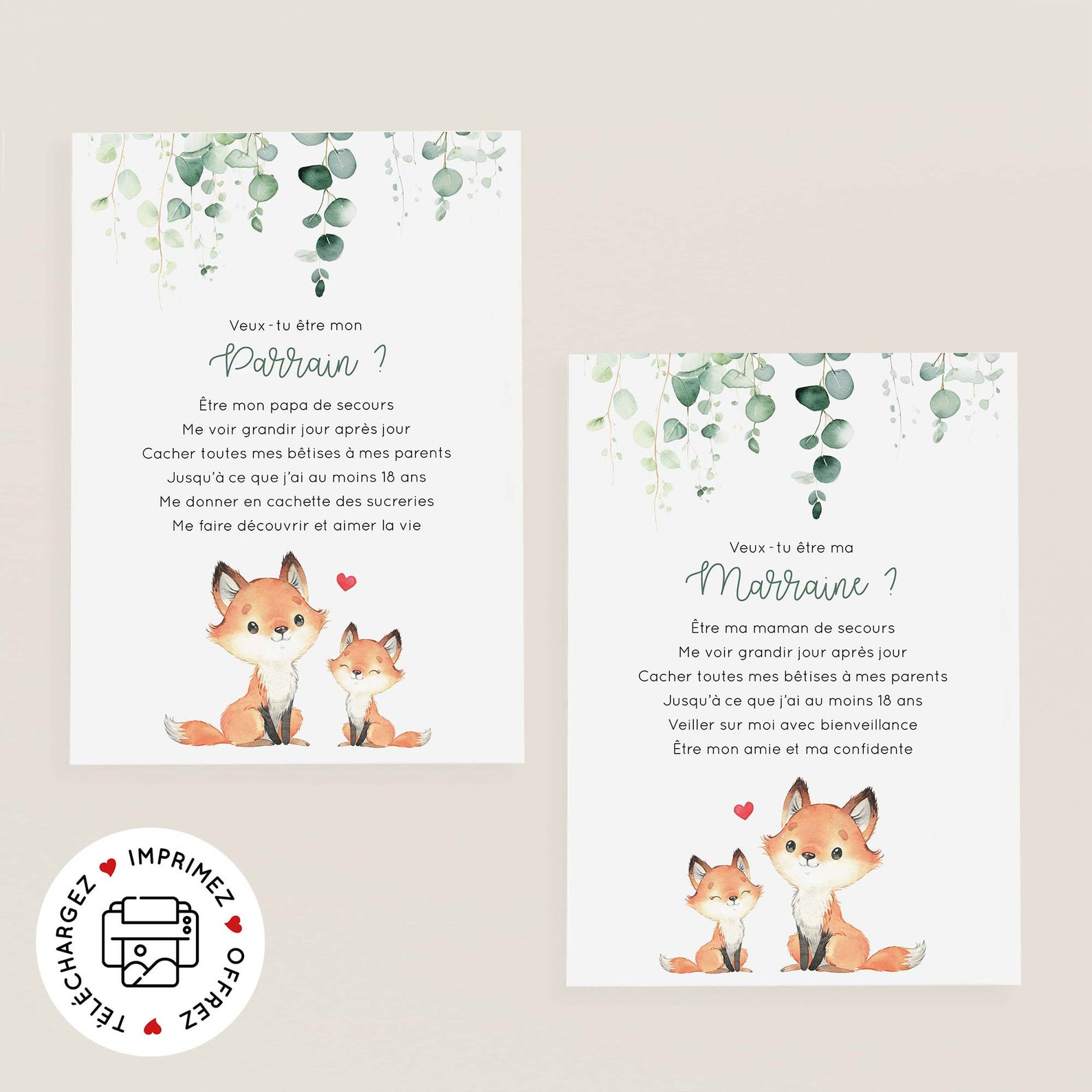 Cartes demande parrain marraine renard – fichiers PDF à imprimer