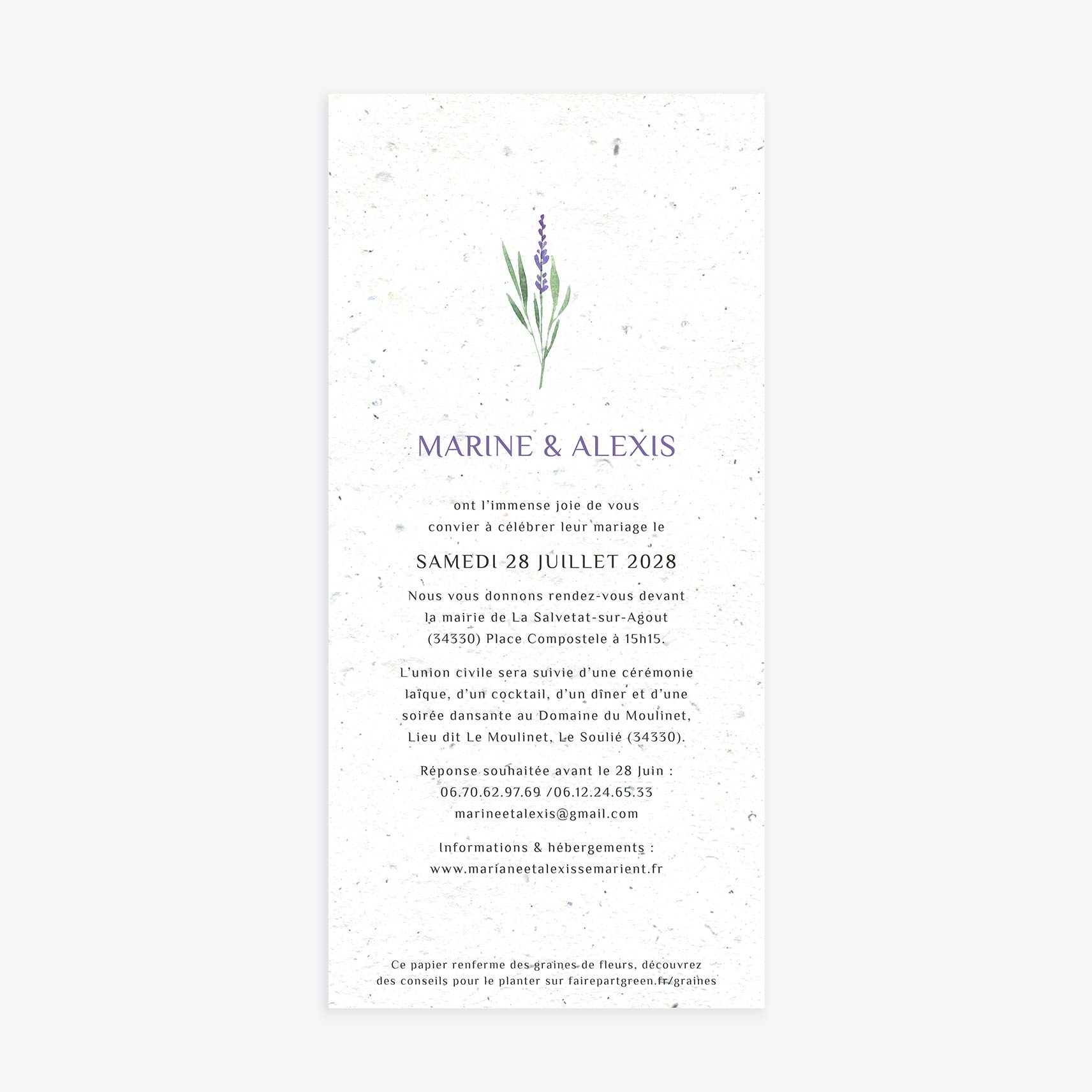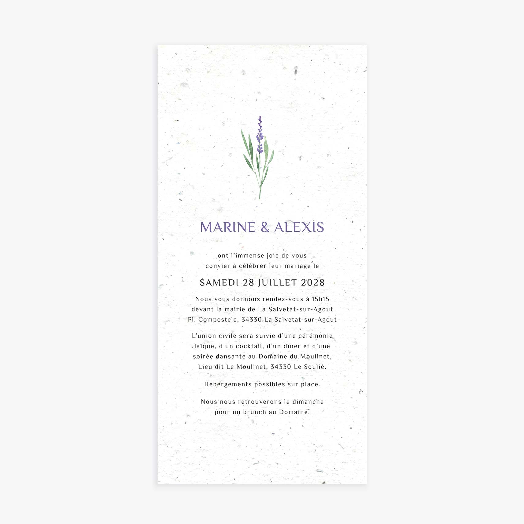 Accueil > Mariage > Faire-part de mariage > Faire-part mariage ensemencé lavande