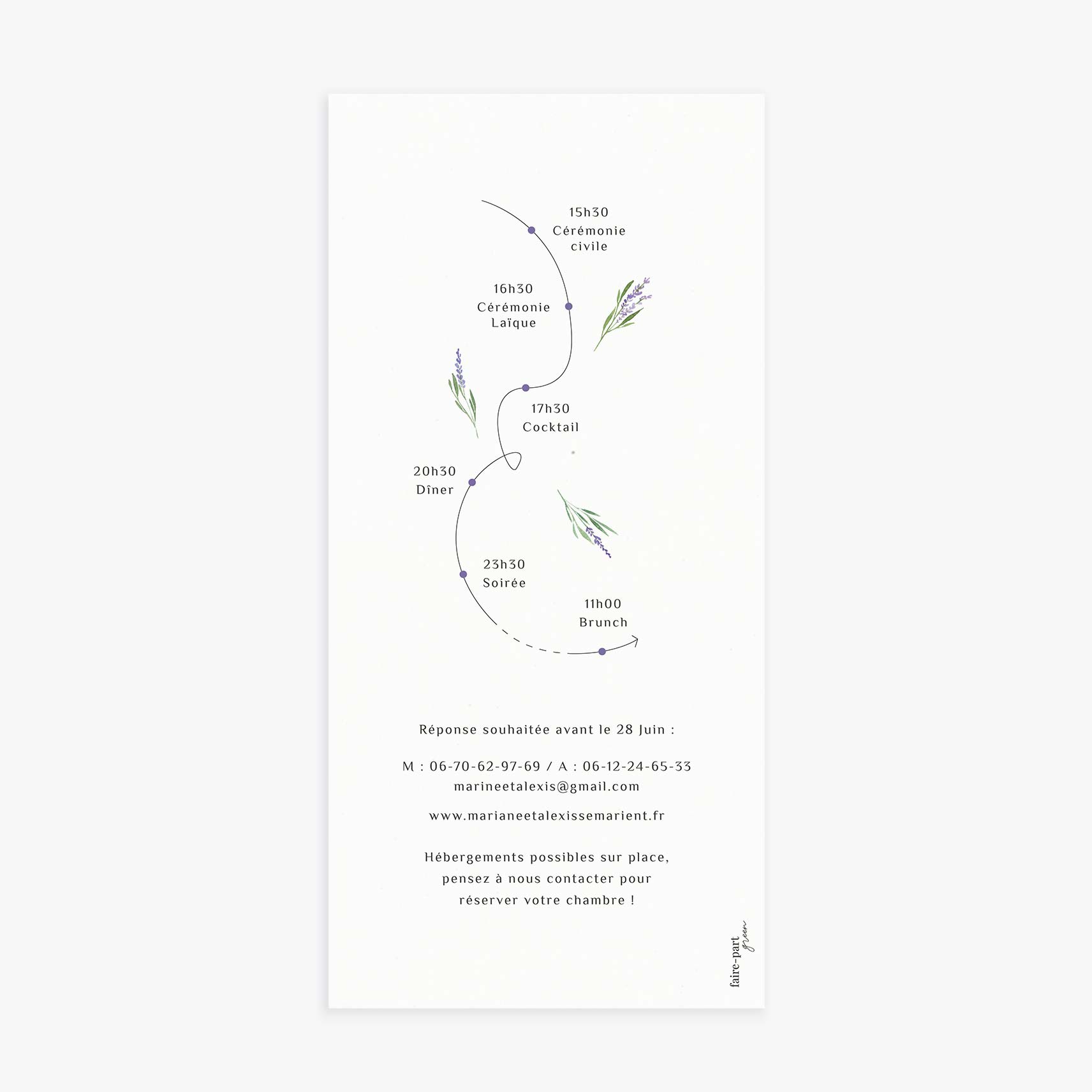 - La mise en page réalisée par Faire-part green.