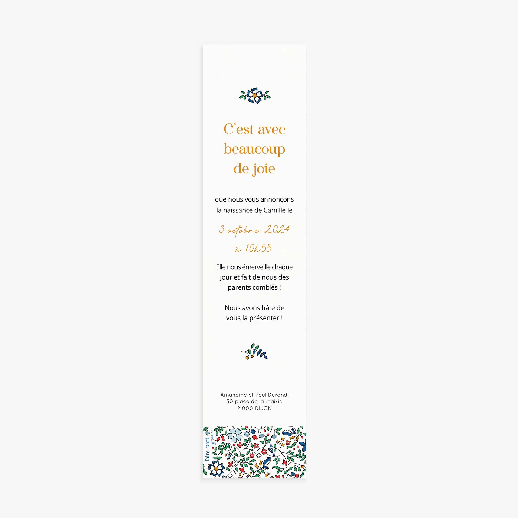 Accueil > Naissance > Faire-part de naissance > Faire-part naissance marque page liberty