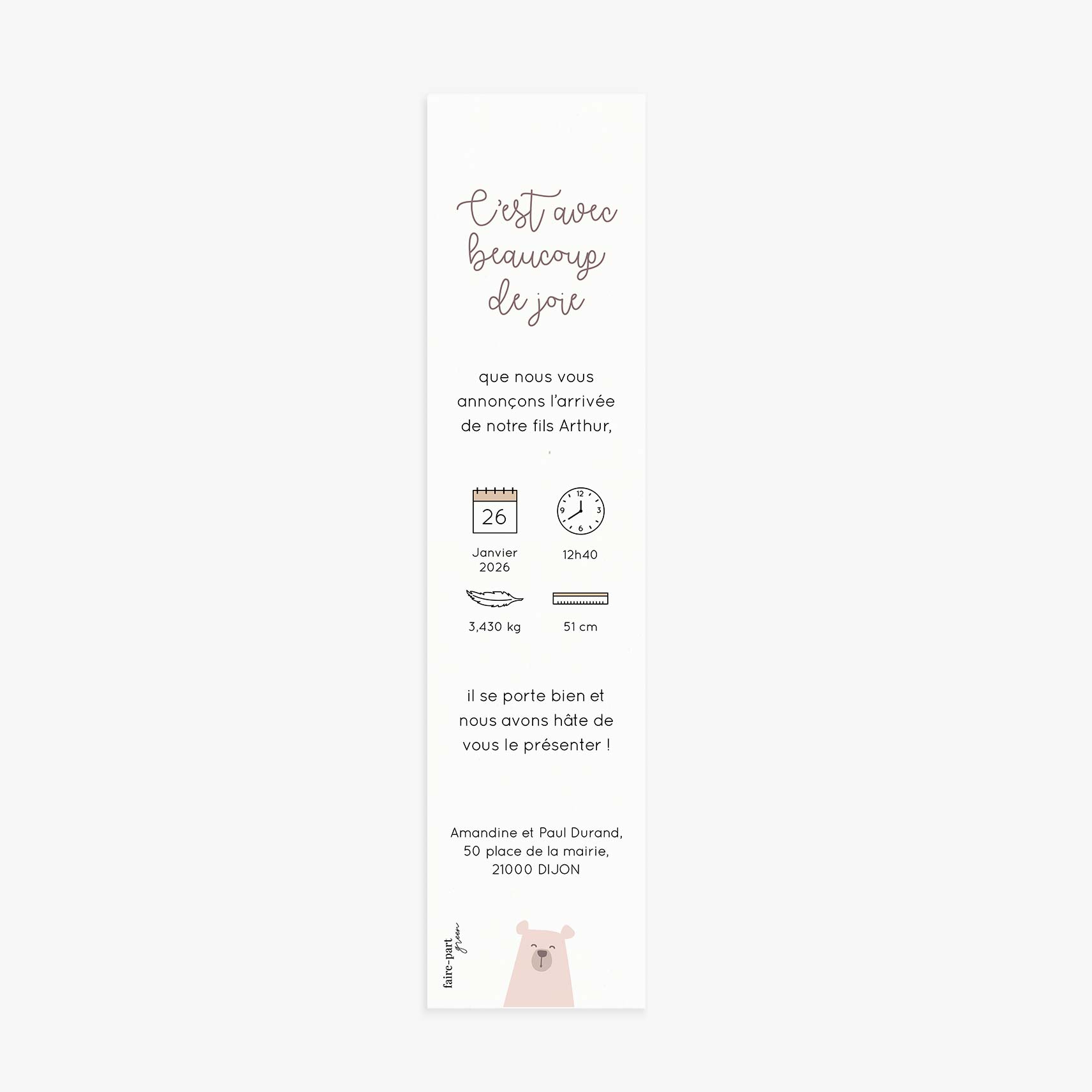 Accueil > Naissance > Faire-part de naissance > Faire-part naissance marque page petit ours