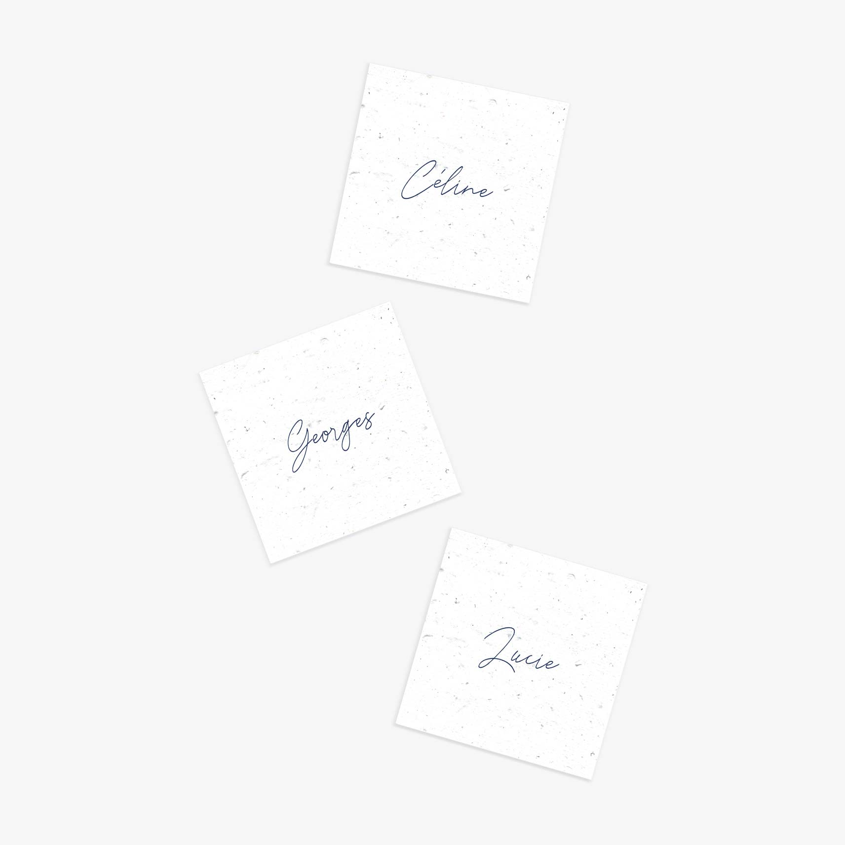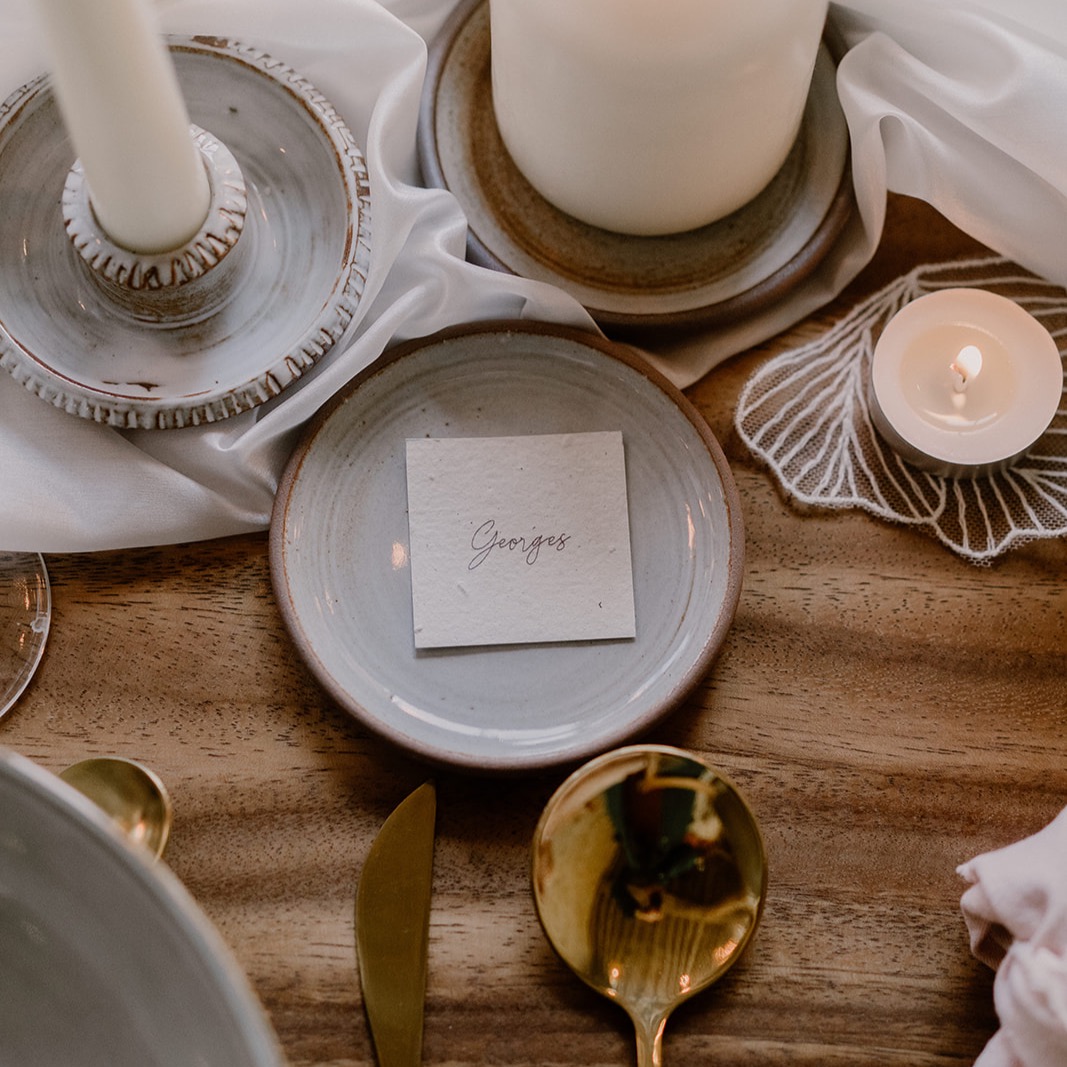 Vous voulez simplifier le placement de vos convives à table ? Utilisez des petits cartons marque-places. Déposez-les simplement sur les serviettes, dans les assiettes ou à côté des verres de vos invités.