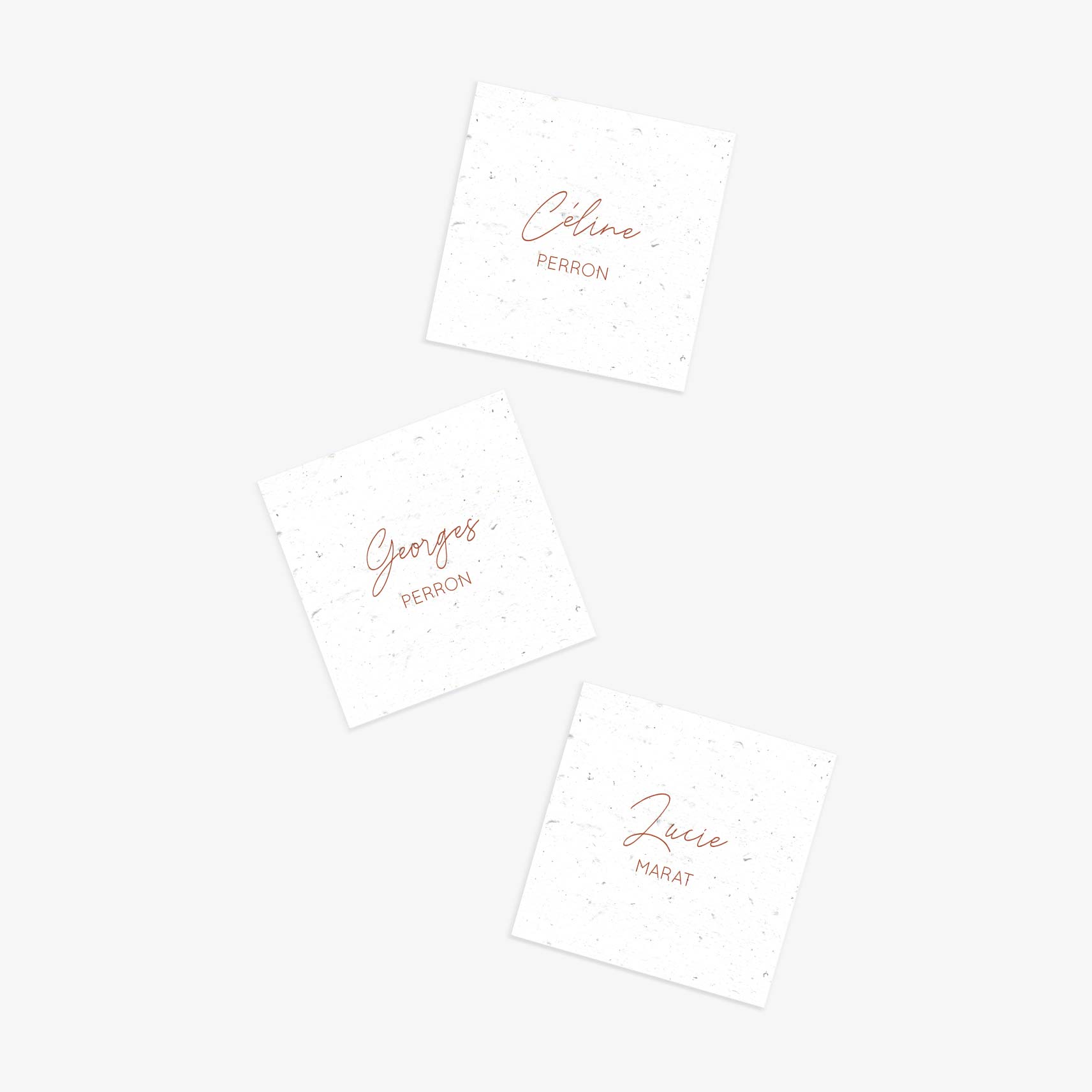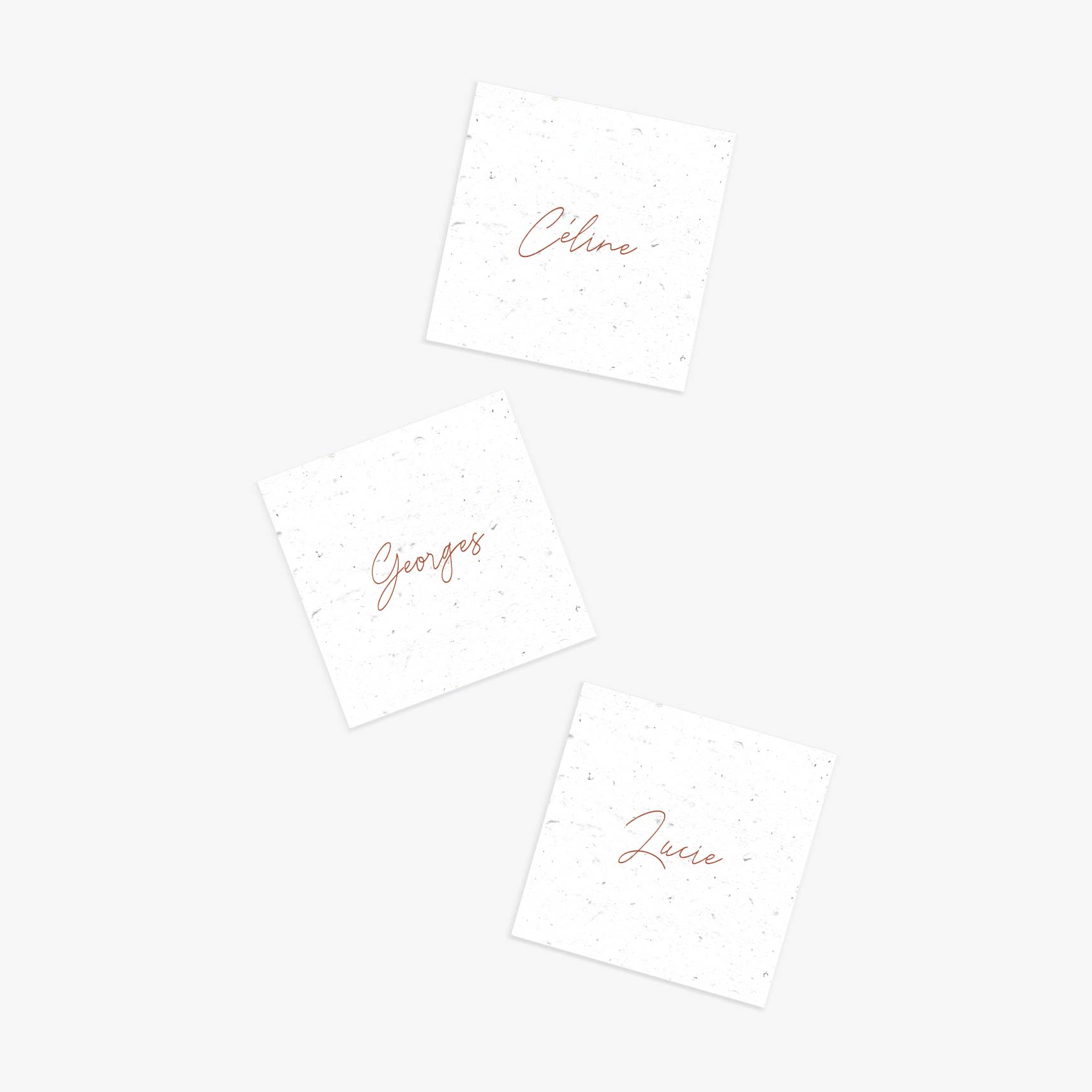 N’hésitez pas à demander des changements de couleurs pour que vos marque-places s’accordent parfaitement à votre décoration de mariage, cette personnalisation est incluse !