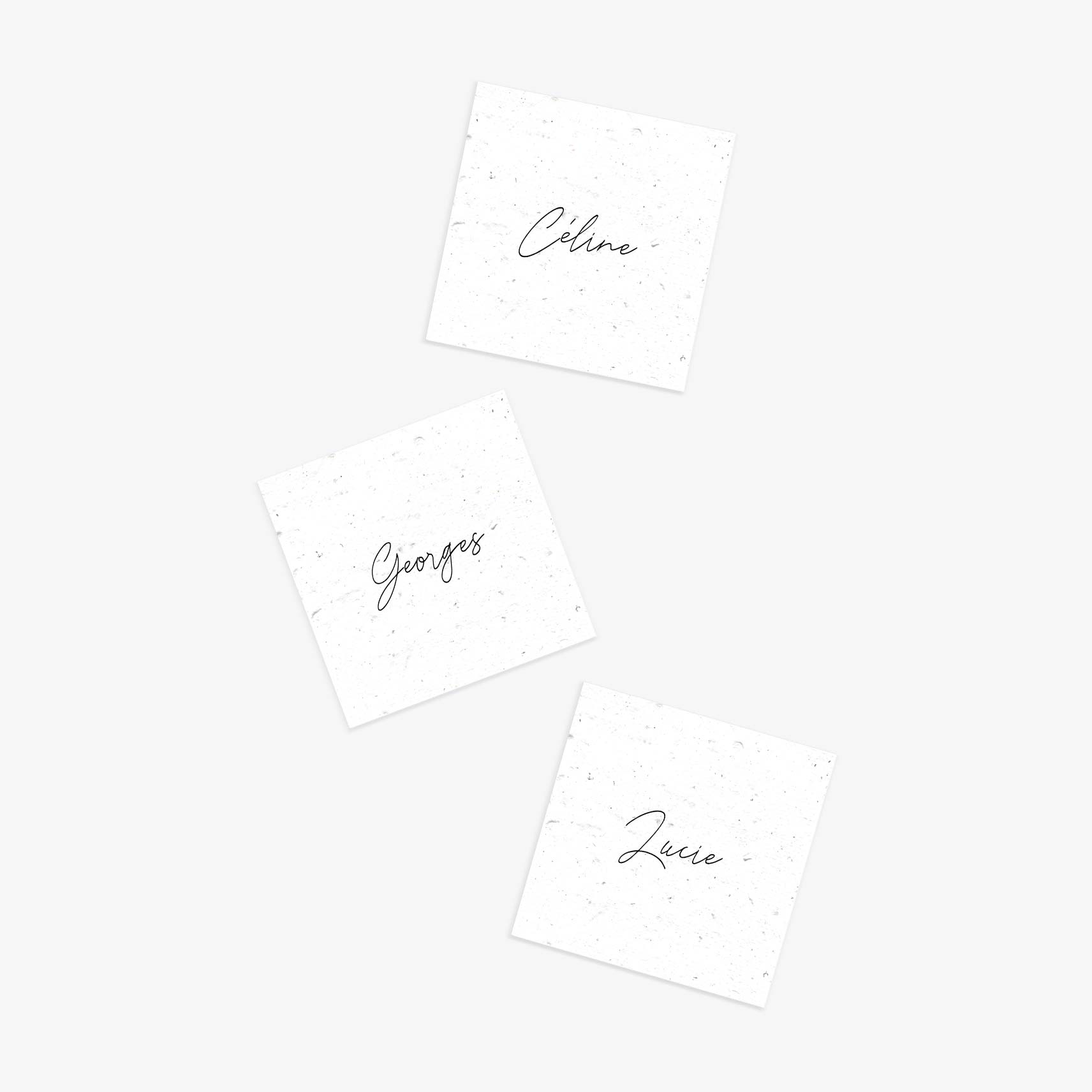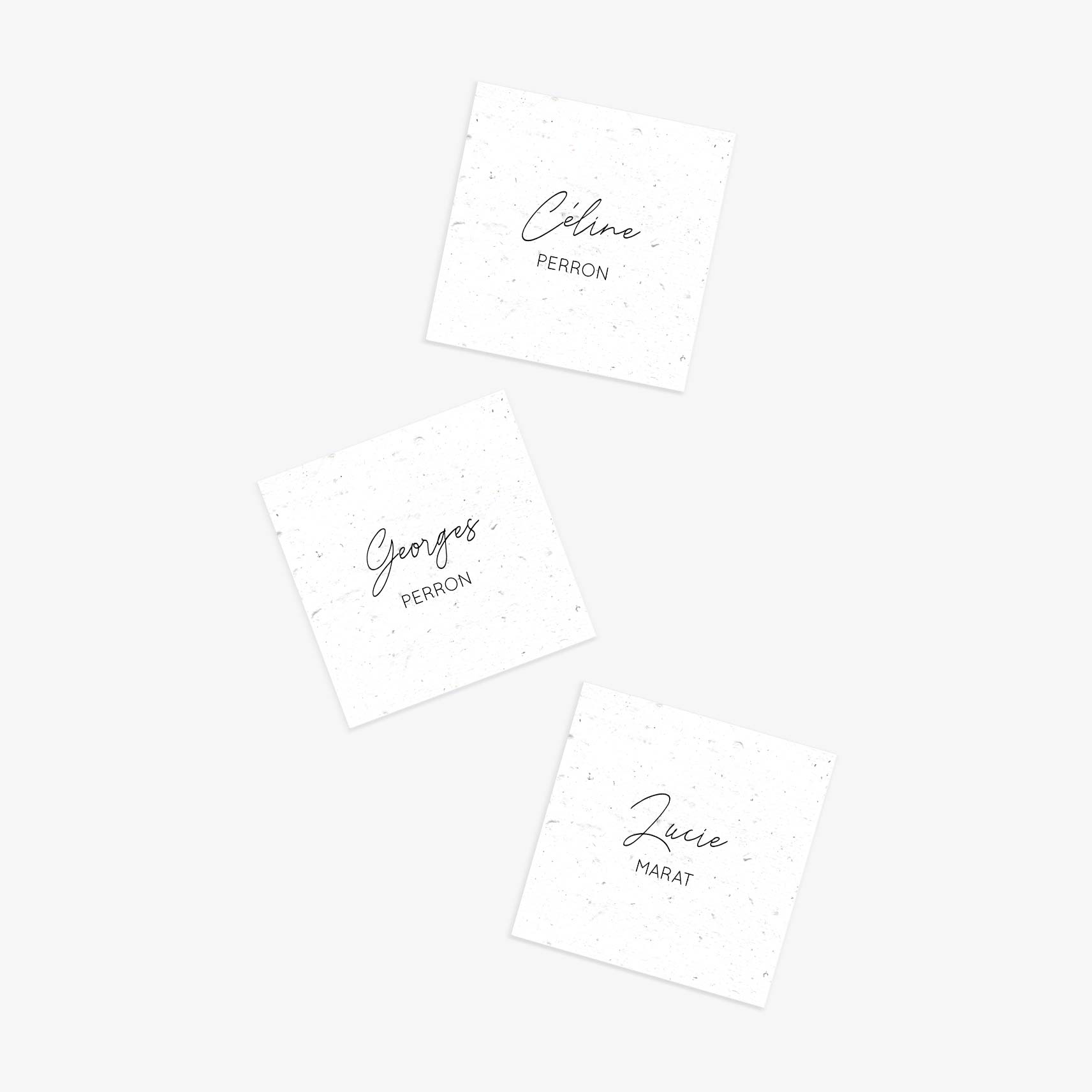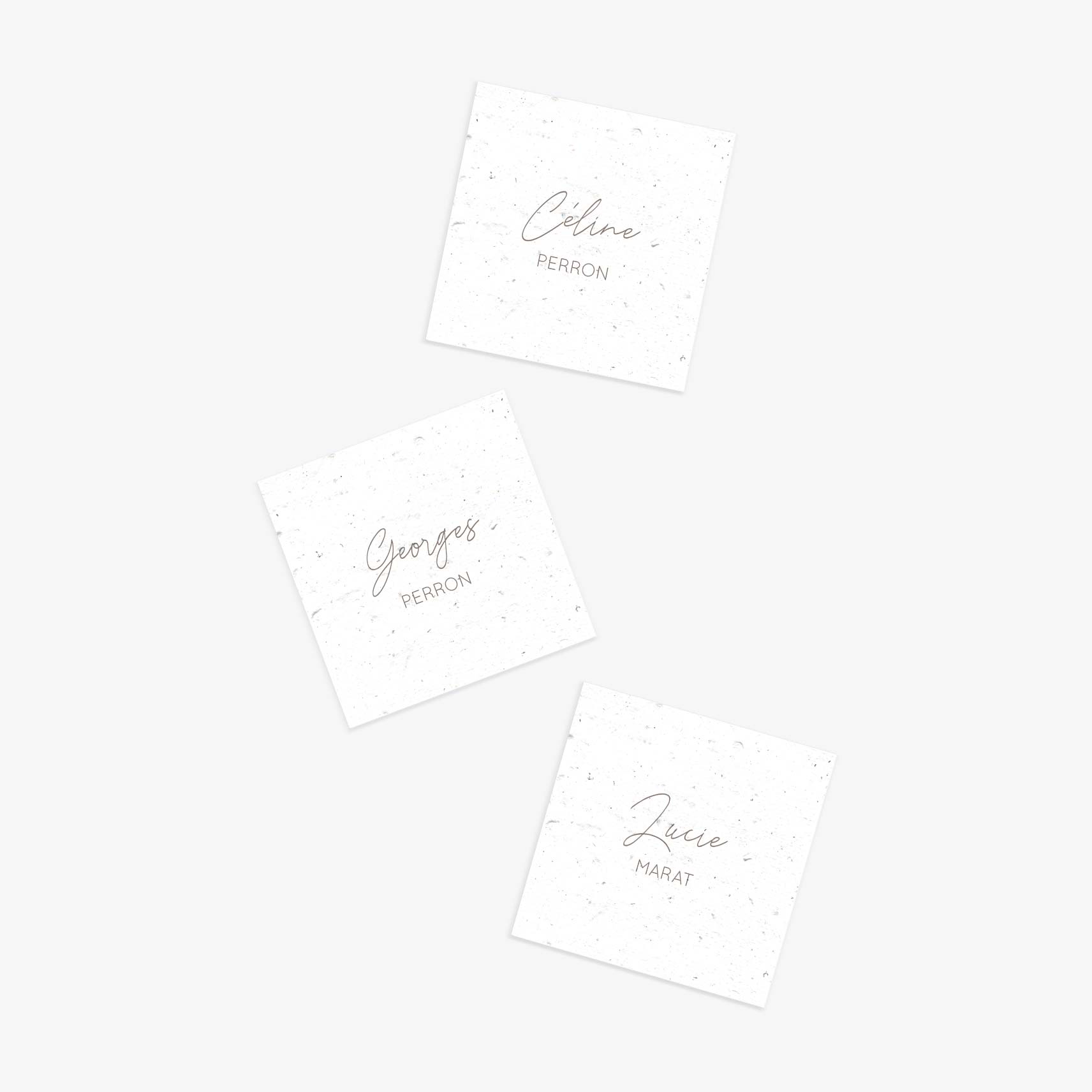 Un marque-place minimaliste. Les marque-places ensemencés Modernité sont parfaits pour les mariages modernes et minimalistes : ils se déclinent dans toutes les couleurs pour s’adapter à votre décoration de table.